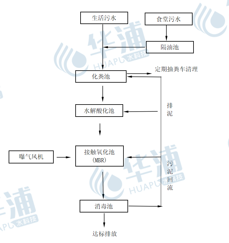 根據(jù)進(jìn)水水質(zhì)、水量及排放標(biāo)準(zhǔn)和建設(shè)單位提供的施工要求,分析對(duì)比現(xiàn)有各種污水處理技術(shù)的特點(diǎn),同時(shí)結(jié)合我方大量的同類工程設(shè)計(jì)施工經(jīng)驗(yàn),確定本工程采用地埋式一體化設(shè)備,主要工藝采用A/O+MBR,該技術(shù)在確保出水穩(wěn)定達(dá)標(biāo)的基礎(chǔ)上,運(yùn)行維護(hù)簡(jiǎn)單方便。