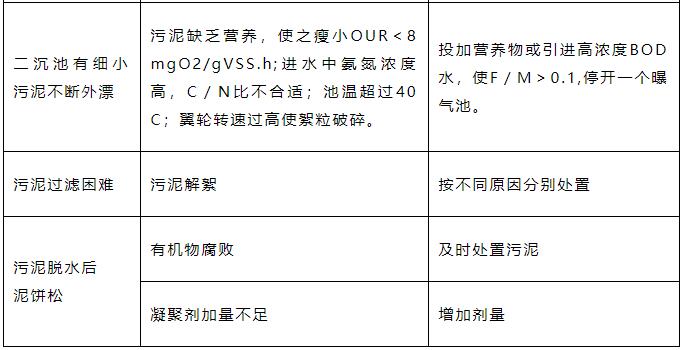 改進辦法是加大回流比,使沉淀池污泥更新并降低沉淀池泥層,減少泥齡,多排泥以降低污泥濃度,還可適當降低曝氣池的DO水平。上述措施可降低硝化作用,以減少硝酸鹽的來源。
